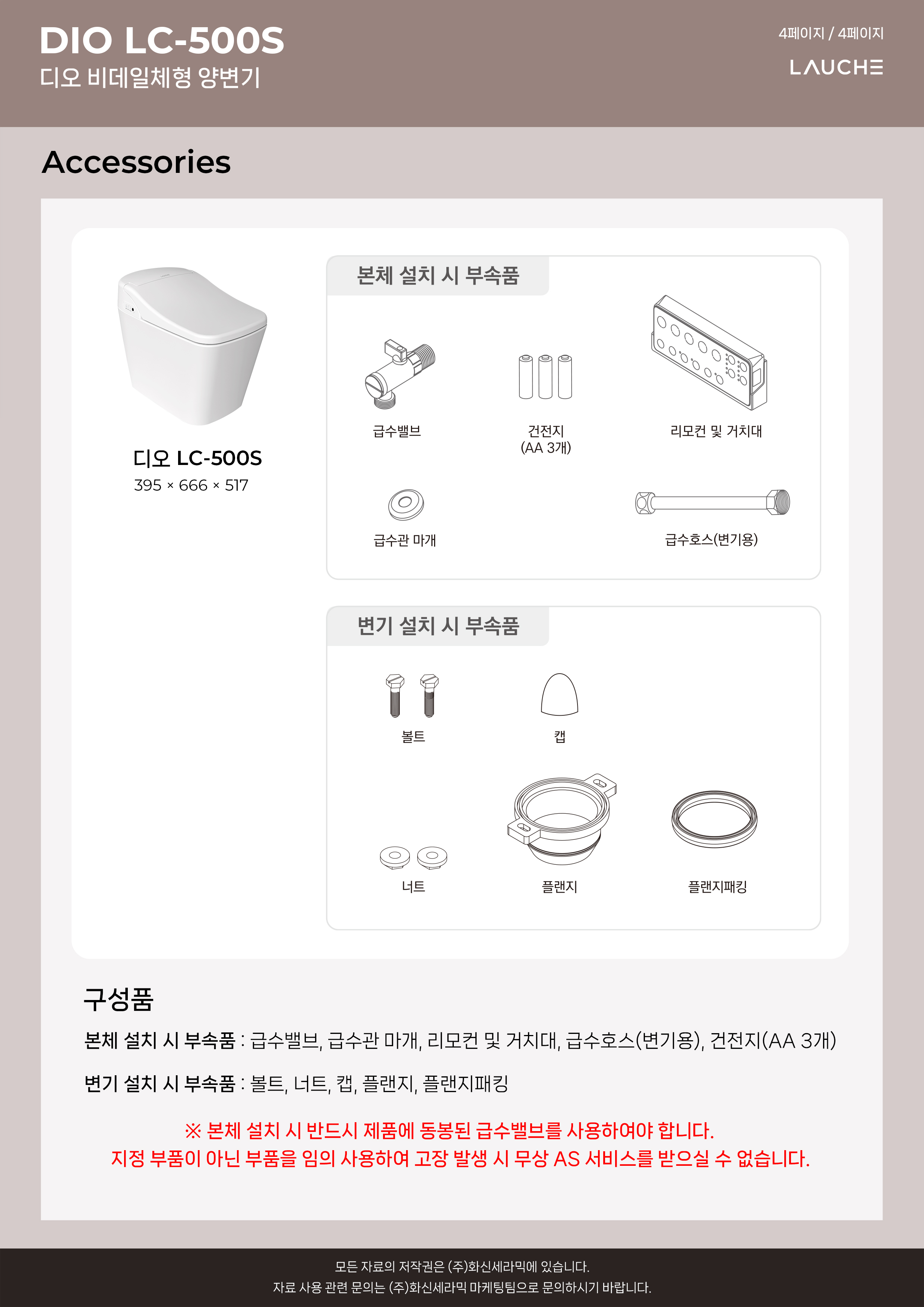 | 브랜드 | LAUCHE | 품번 | 디오(직수/비데일체) LC-500S(상) |